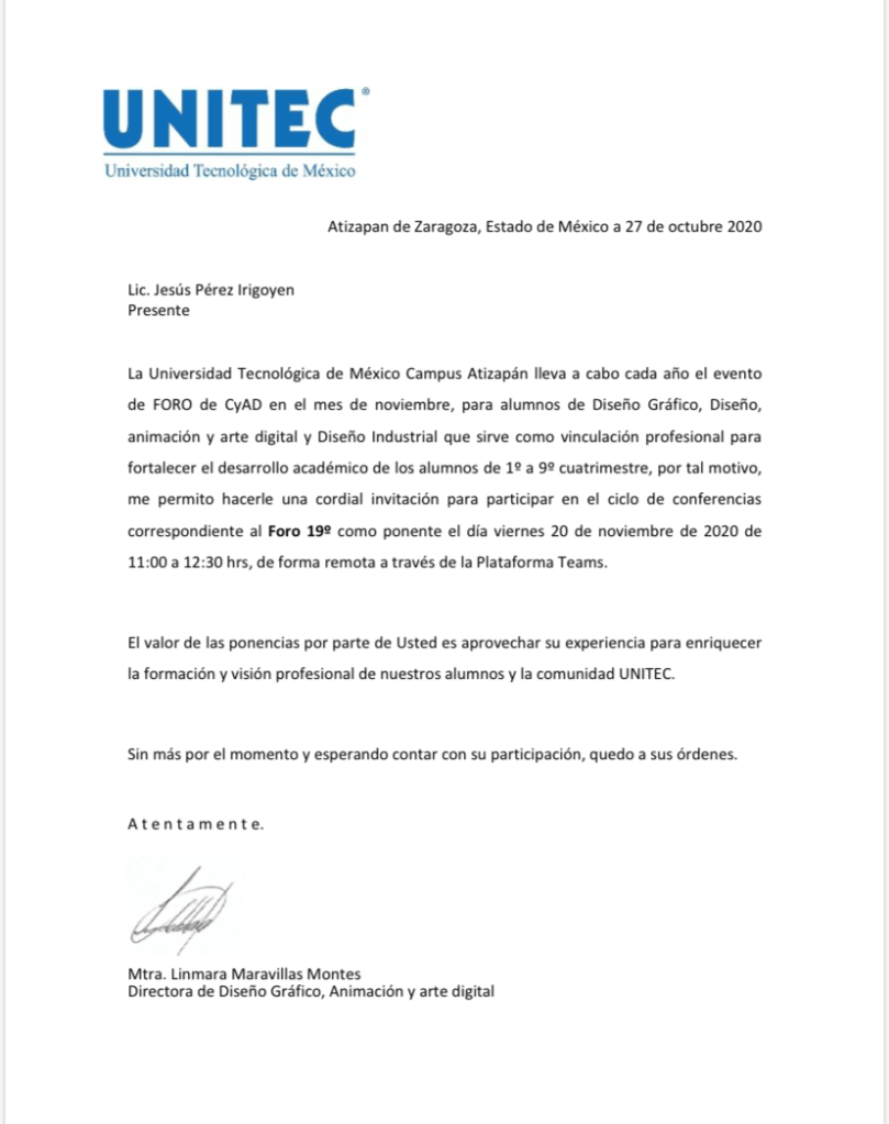 We believe in the value of forums for students and young people interested in Design, animation and digital art as a factor of change in society. Recognizing that these activities serve as a professional link to strengthen the academic development of students, for this reason we participate in conferences online or in person. The value of the presentations is to take advantage of the experience to enrich