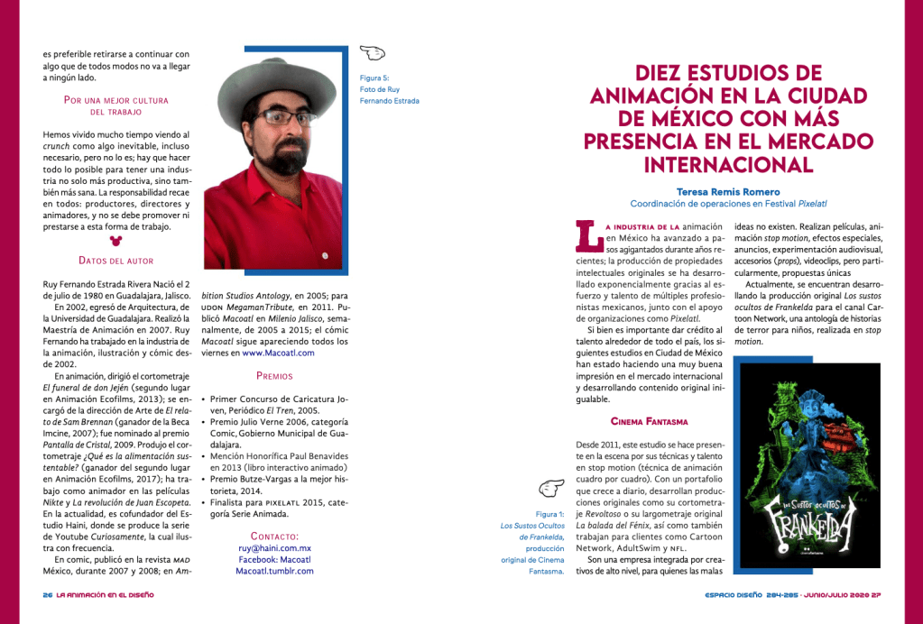 Teresa Remis Romero developed this special article researching about the animation studios located in Mexico City and what has been the impact of their projects, analyzing the quality of their animation, their originality or the uniqueness of their contents.