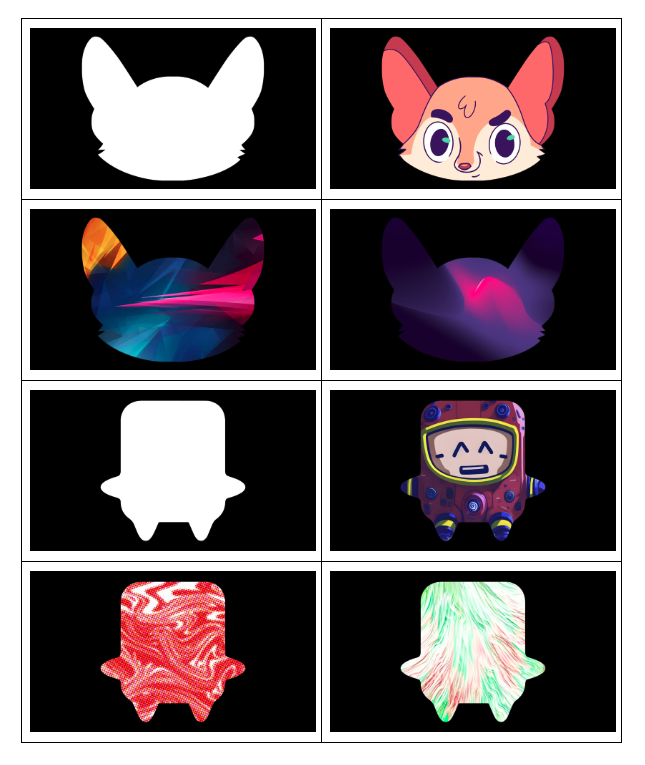 Artists were invited to create an origina illustration to be be projected inside the silhouette of Caco or Kyübu (characters of CADO and Cosmonaute 360). This installation with video mapping served as an exhibition space to project visuals and illustrations created by the community.