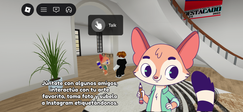 On December 8th, visitors to Festival DestaCADO encountered a specially designed immersive spot: a virtual gallery integrated into La Extravagante Mansión CADO, a space dedicated to independent artists and emerging voices. Inside this digital environment, selected artworks were projected and curated as part of an explorable experience—blurring the line between exhibition, game space, and interactive narrative.